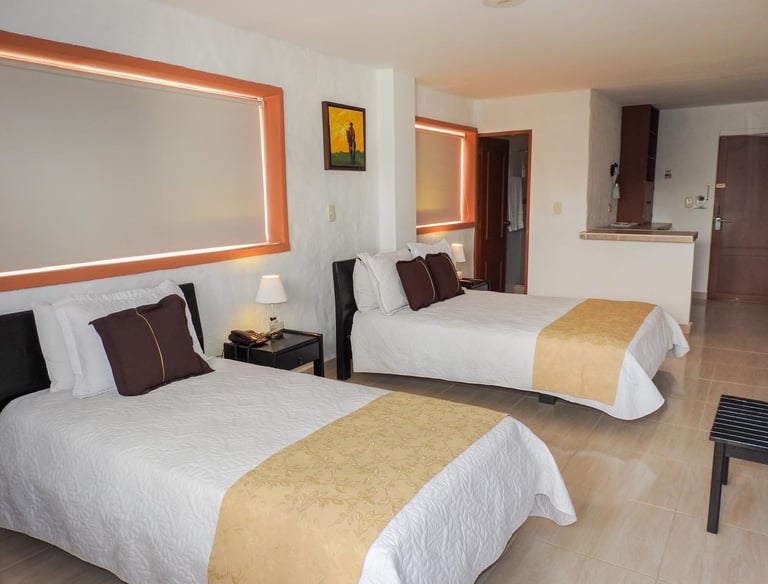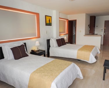 Contamos con un total de 78 habitaciones; en la Torre 1 (27 habitaciones con balcón con decoración colonial) y en la torre 2 (51 habitaciones con decoración contemporánea).